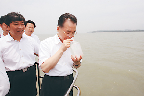 6月29日,中共中央政治局常委、国务院总理温家宝到江苏无锡对太湖污染及治理情况进行调查研究。