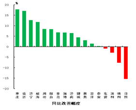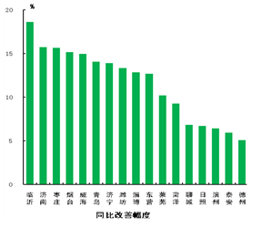 统计数据显示,今年上半年,全省环境空气质量综合指数平均为7.62,同比改善12.1%。环境空气质量综合指数最好的城市是威海市,为4.21,最差的城市是淄博市,为9.52;同比改善幅度最大的城市是临沂市,为18.6%。
