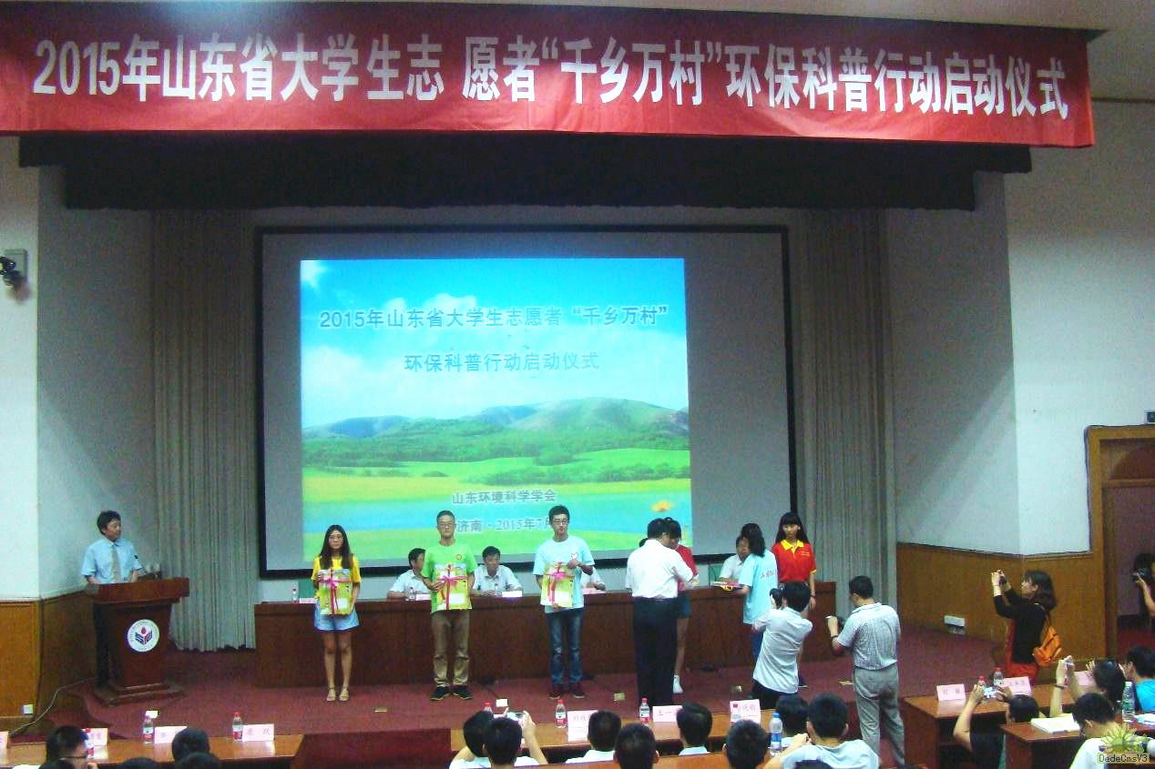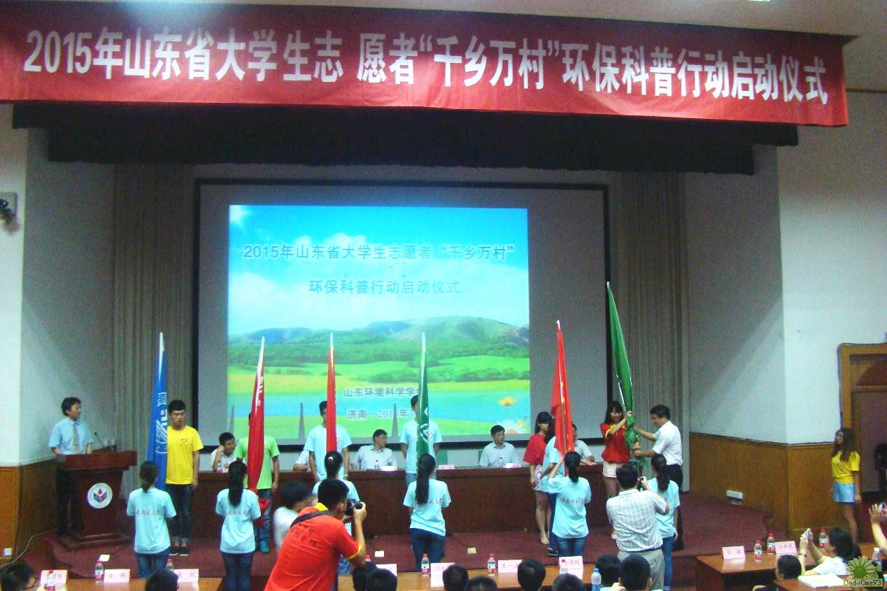 7月17日上午,由山东环境科学学会组织召开的2015年山东省大学生志愿者“千乡万村”环保科普行动启动仪式在山东师范大学千佛山校区举行。此次活动将围绕“让环保科普走进农村,走进田间,走进农民心间”的宗旨,以村庄环境整治为重点,以建设宜居村庄为导向,在两个月的时间内集中开展形式多样、内容丰富、重点突出的农村环保科普主题活动。启动仪式由山东环境科学学会秘书长季明主持。省环保厅副厅长谢锋出席启动仪式并讲话。