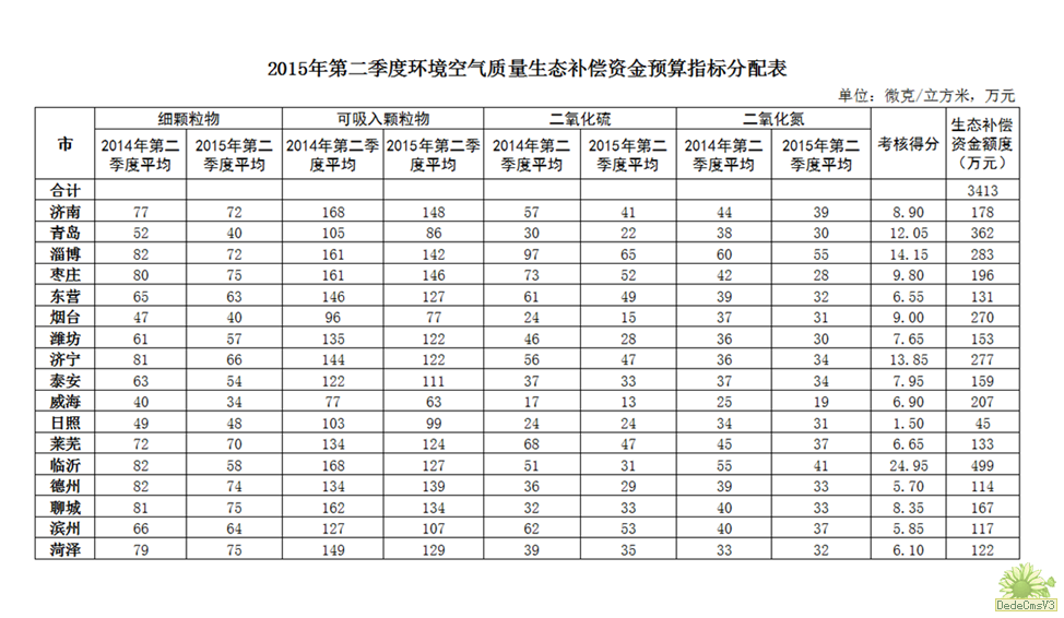 近日,省财政厅、省环保厅联合下发《关于下达2015年第二季度环境空气质量生态补偿资金预算指标的通知》。根据《山东省人民政府办公厅关于修改山东省环境空气质量生态补偿暂行办法的通知》(鲁政办字[2015]44号,以下简称《办法》)和省环保厅发布的各设区市城市环境空气质量自动监测数据,省财政厅、省环保厅对2015年第二季度全省环境空气质量生态补偿资金进行了清算。通知要求,各市收到资金后,要严格按照《办法》及国家和省关于污染防治专项资金管理的有关规定,将资金统筹用于辖区内改善大气环境质量的项目支出;各市要按照省政府关于大气环境质量逐年改善的总体部署和要求,切实加大投入,严格落实《山东省2013-2020年大气污染防治规划》和《山东省2013-2020年大气污染防治规划一期(2013-2015年行动计划)》,加快项目实施,加大环境执法监察力度,确保实现大气环境质量改善目标。
