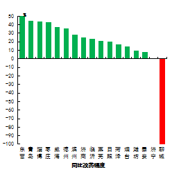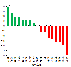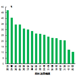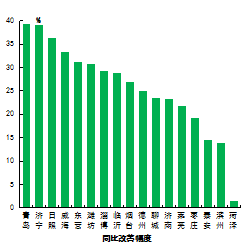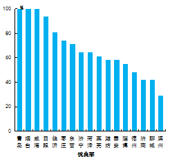 优良率最好的城市是青岛、烟台和威海市,为100.0%,最差的城市是滨州市,为29.0%。8市同比增加,增加幅度最大的城市是青岛市,为19.4个百分点;淄博市同比持平;8市同比减少,减少幅度最大的城市是滨州市,为29.1个百分点。