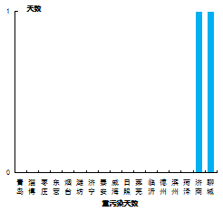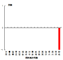 重污染天数最少的城市是青岛等15市,未出现重污染天气;最多的城市是济南和聊城市,为1天。济南等16市同比持平;聊城市同比增加,增加幅度为1天。