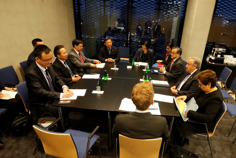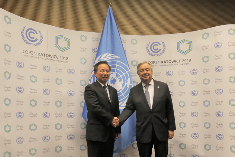会议期间,李干杰部长与联合国秘书长古特雷斯、副秘书长刘振民、《联合国气候变化框架公约》秘书处执行秘书埃斯皮诺萨举行会谈,表达中方对气候变化多边进程和对卡托维兹气候大会取得成功的坚定支持,并就卡托维兹大会及2019年联合国气候变化峰会有关事项交换了意见。