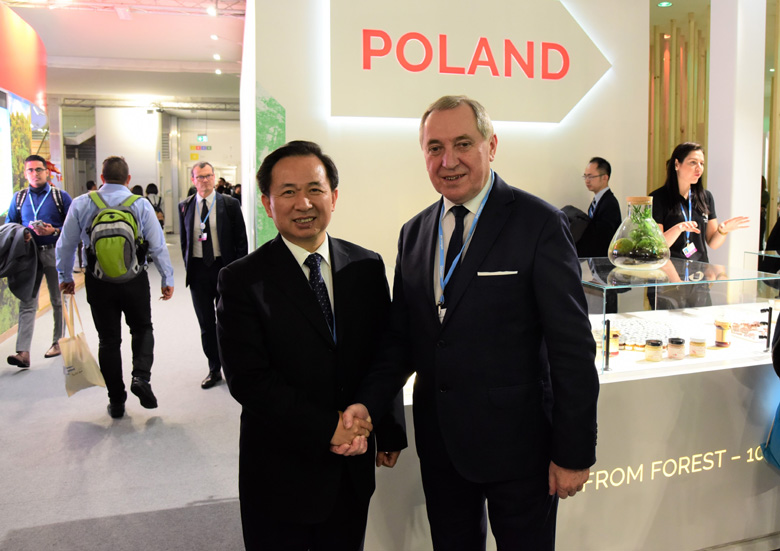 12月2日-14日,联合国气候变化框架公约第24次缔约方会议、《京都议定书》第14次缔约方会议(CMP14)及《巴黎协定》第1次缔约方会议第3阶段会议在波兰卡托维兹举行,期间,12月3日举行领导人峰会。生态环境部部长李干杰出席峰会并与有关各方开展密集性磋商,积极推动卡托维兹大会取得成功。