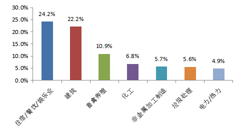 从行业类型来看,本月公众反映最集中的行业是住宿餐饮娱乐业,占24%,其次为建筑业和畜禽养殖业,分别占22 %和11%,受春节前后建筑工地停工影响,建筑业举报占比下降20个百分点。