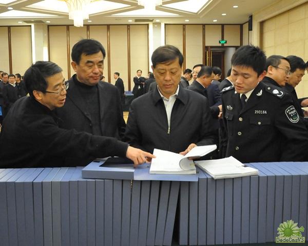2017年以来,山东省借力环保督察,层层传导压力,狠抓责任落实,攻坚整治环保突出问题,促进环境质量持续改善。图为山东省环保厅厅长王安德(中)在济宁市调阅督察档案,了解地方环境执法规范化建设情况。
