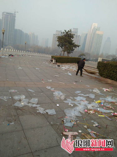 针对元宵节晚上可能出现的人多车杂、垃圾量剧增等情况,临沂环卫集团制定了多种清扫预案,把责任真正落实到每个人。当晚上11点多,外出游玩的市民们逐渐散去,环卫工人立即各就各位,直奔预先安排好的工作区域开展清扫作业。铲车、机扫车等各种车辆安排在各自区域,及时跟上作业,提高了清扫工作效率,也减轻了环卫工人的工作负担。在北城新区茶山路庙会现场,环卫工人们告诉记者,“每年的正月十五,庙会这边工垃圾量都会比平时多出两三倍,打扫起来十分费力。”环卫集团四分公司负责该路段保洁的环卫工人陈秀君说,“由于风大,大量的鞭炮屑到处飞,有的地方鞭炮屑都高过了路沿石。”