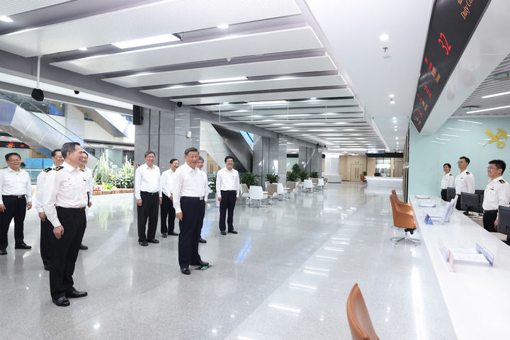 10月15日至16日,中共中央总书记、国家主席、中央军委主席习近平在福建考察。这是16日上午,习近平在中国(福建)自由贸易试验区厦门片区考察时,同综合服务大厅现场工作人员亲切交流。新华社记者 鞠鹏 摄
