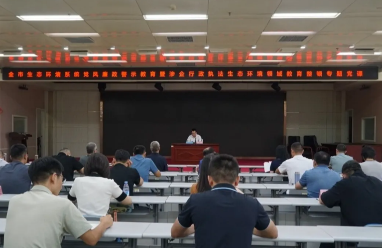 专题党课以视频形式举办,会上集体观看了警示教育片。局班子成员,县处级干部,局机关各科室、局属各单位(执法支队全体人员)、临沂生态环境监测中心中层以上干部在主会场参加会议,各县区分局中层以上干部(执法大队全体人员)在分会场参加会议。