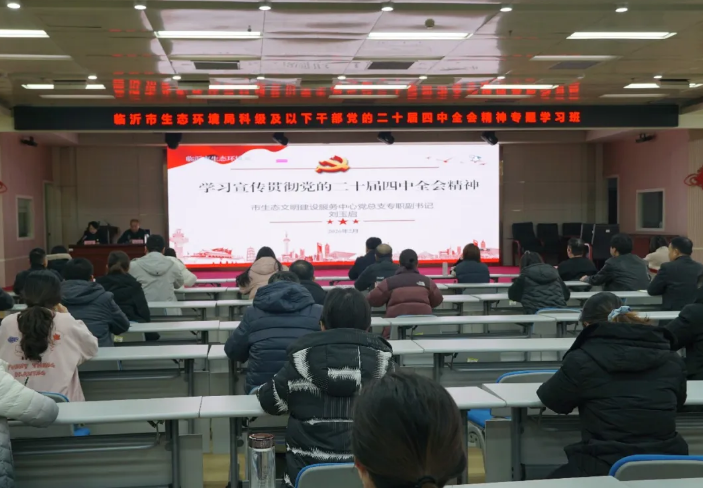 2月4日,市生态环境局举办科级及以下干部党的二十届四中全会精神专题学习班。局党组副书记、副局长、二级调研员刘兆燕同志主持开班仪式并作动员讲话,全市生态环境系统科级及以下全体干部,山东省临沂生态环境监测中心科级及以下党员干部参加学习。