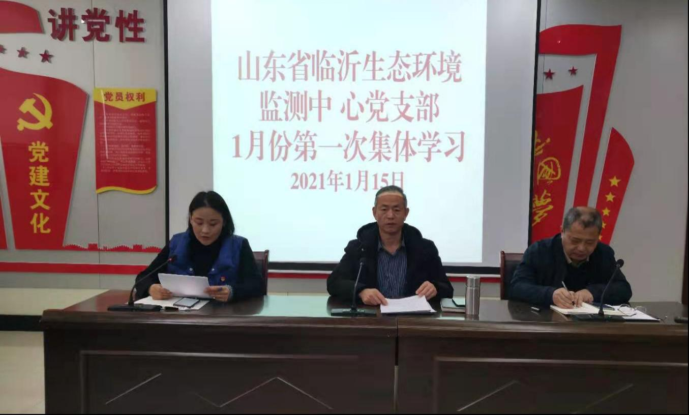 1月15日,山东省临沂生态环境监测中心党支部组织召开2021年1月份第一次集体学习,揭开了支部党员年度教育学习序幕。支部书记闫鹏主持学习活动,副书记郑翔、纪检委员王惠勇领学,在家的党员参加了活动。