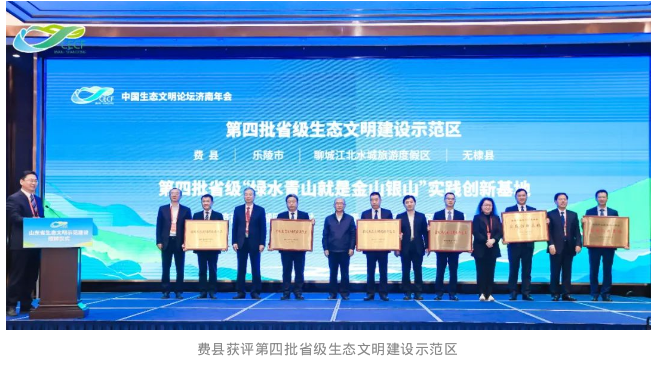 近日,山东省生态文明示范建设表彰仪式在济南举行,我市费县、沂南县马牧池乡分别获评第四批省级生态文明建设示范区和第四批省级“绿水青山就是金山银山”实践创新基地称号。