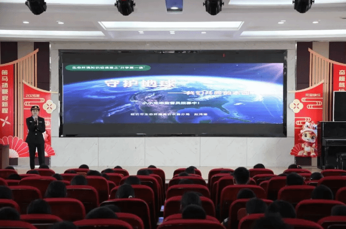 宣讲现场,宣讲人员以生动比喻拆解地球生态体系,让孩子们直观理解森林、湿地、江河等生态载体的重要作用;通过播放公益短片,带领大家感受地球壮美,领悟万物共生的意义。宣讲团还围绕“地球妈妈发来的SOS”主题,剖析当前生态困境与隐性污染危害,讲解垃圾分类知识,让同学们深知环保刻不容缓。